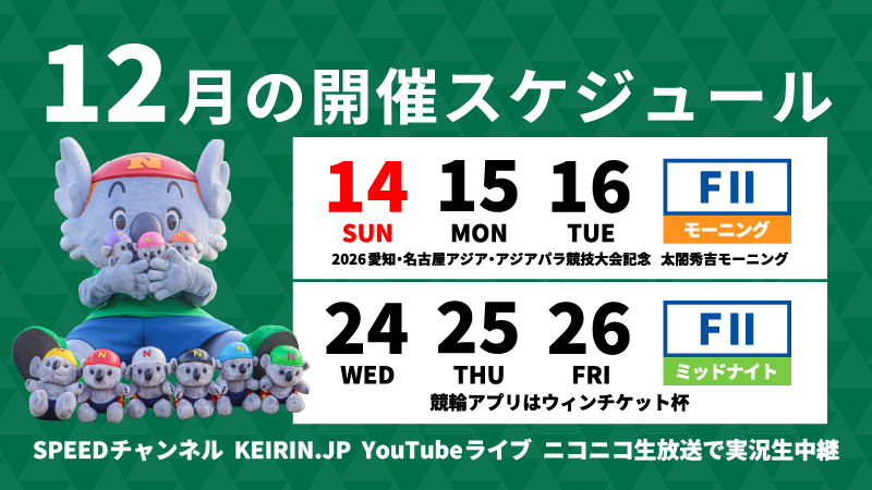 | 12/24(水)〜12/26(金) | 本場![]() 【名古屋】競輪アプリはウィンチケット杯 |