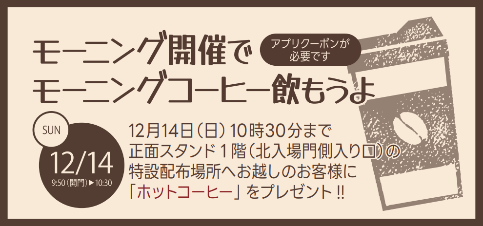 12月14日(日)開門(9:50)~10:30にモーニング開催に合わせて「モーニングコーヒー」を配布!