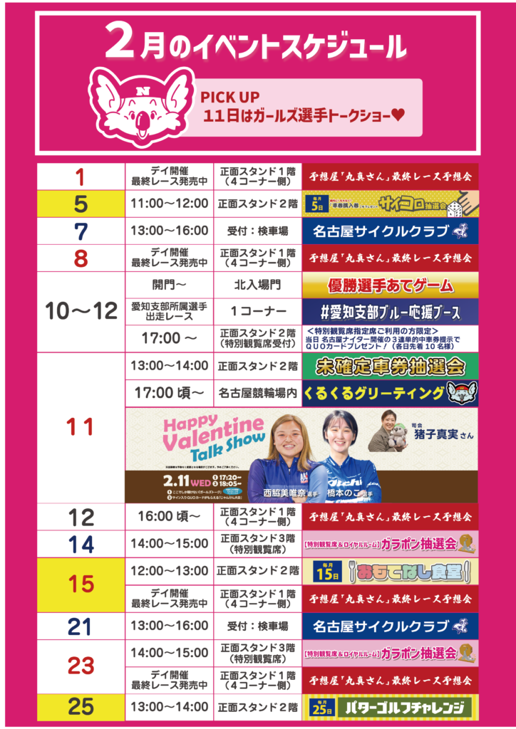 2026年2月のイベントスケジュールは以下の通りです。