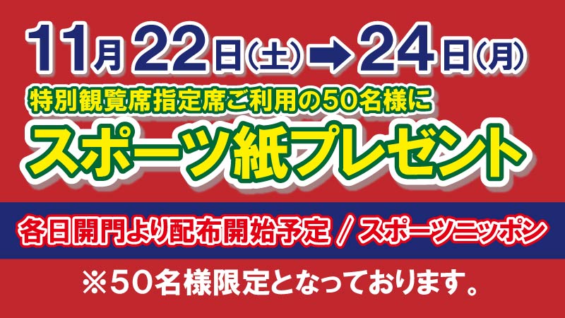 | 11月16日(日)〜11月18日(火) | 名古屋 | ![]() | 【名古屋】どえりゃー金シャチナイター 中京スポーツ杯 |